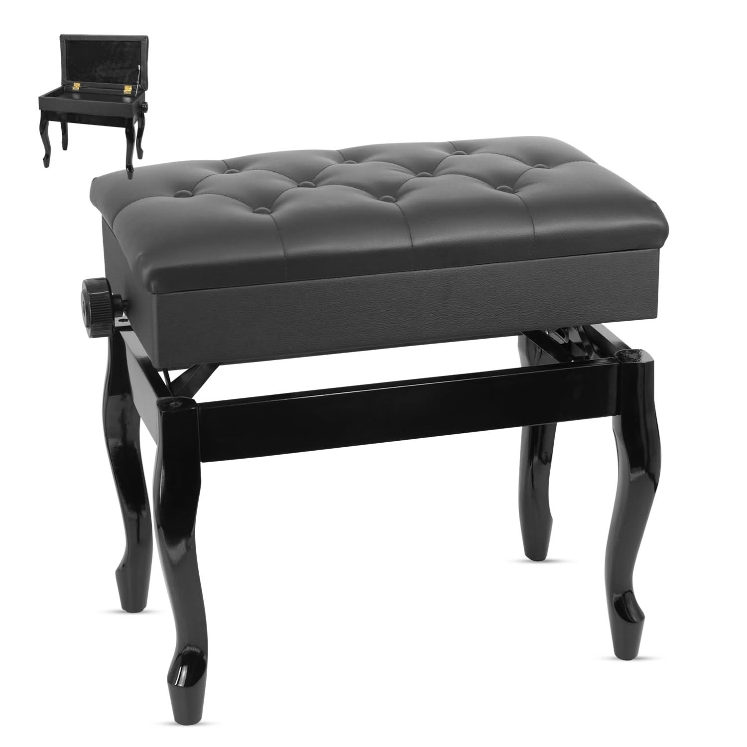 This piano chair’s adjustable height, ranging from 19 to 23 inches, allows for a customized fit for any adults and kids. Made from durable metal alloy, wood, ABS, and soft sponge, this piano bench combines elegance with lasting durability. The spacious seat size provides the perfect foundation for focused, uninterrupted performance. |
